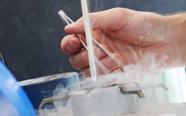 - Откройте сосуд Дьюара, отыщите и извлеките необходимую соломинку. Важно: не вынимайте соломинки, чтобы посмотреть маркировку. Работайте с упаковочным листом, чтобы точно знать, какую порцию брать.